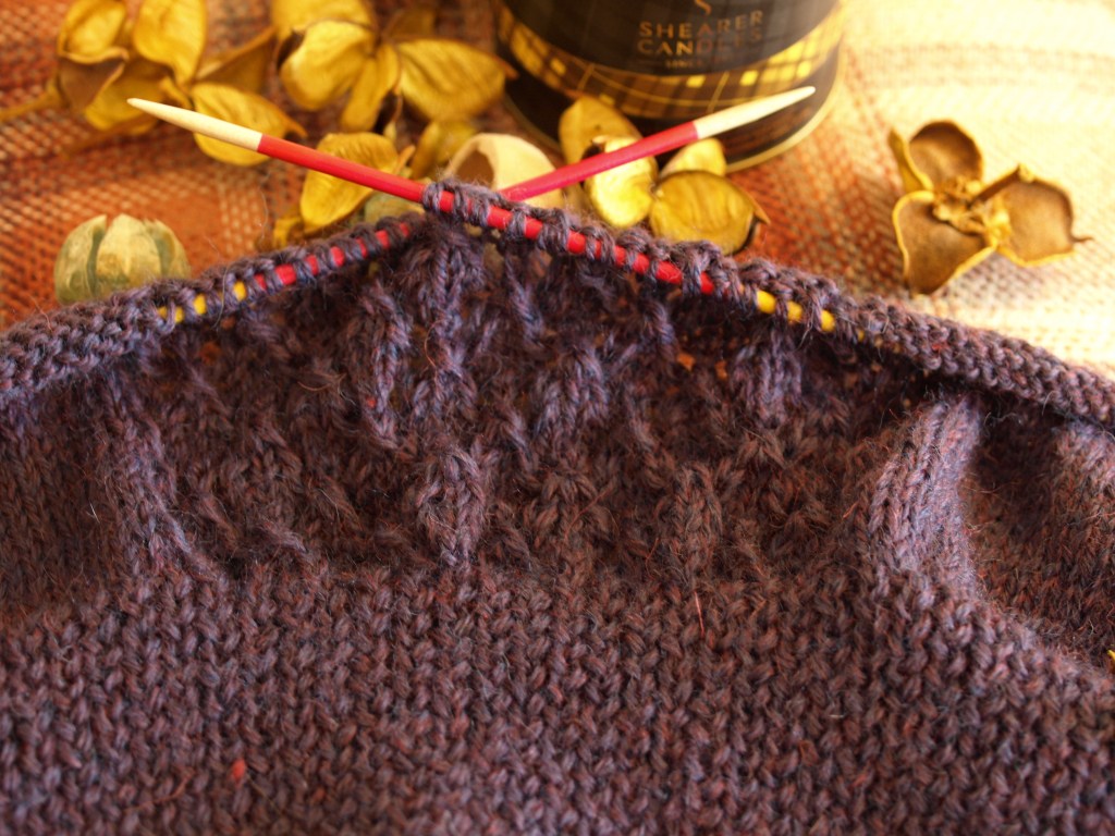 The Heather Sweater is underway and I’d say my progress to date is reasonable. I would possibly upgrade that to very reasonable considering that the recent few days of hot weather have made knitting a bit of a chore again. I put in a solid hour or so yesterday with my electric fan to cool me down, but other than that it’s been a case of a few rows in the morning and perhaps half an hour last thing in the evening.