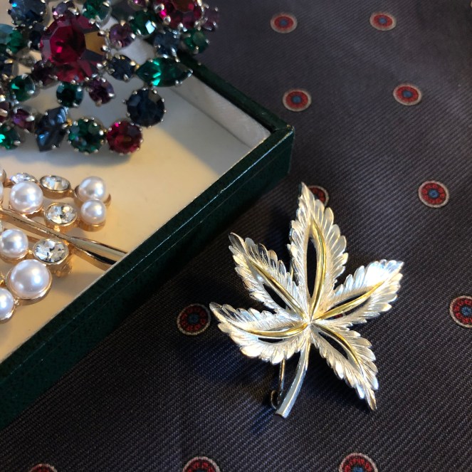 This maple leaf is the only decent piece in my brooch collection, by which I mean it’s ‘real’ silver as opposed to base metal. It was a gift many years ago from one of my sisters and I love it. Understated and elegant, it’s one of those items that turn out to be exactly right whenever I am struggling to decide quite what I need.
