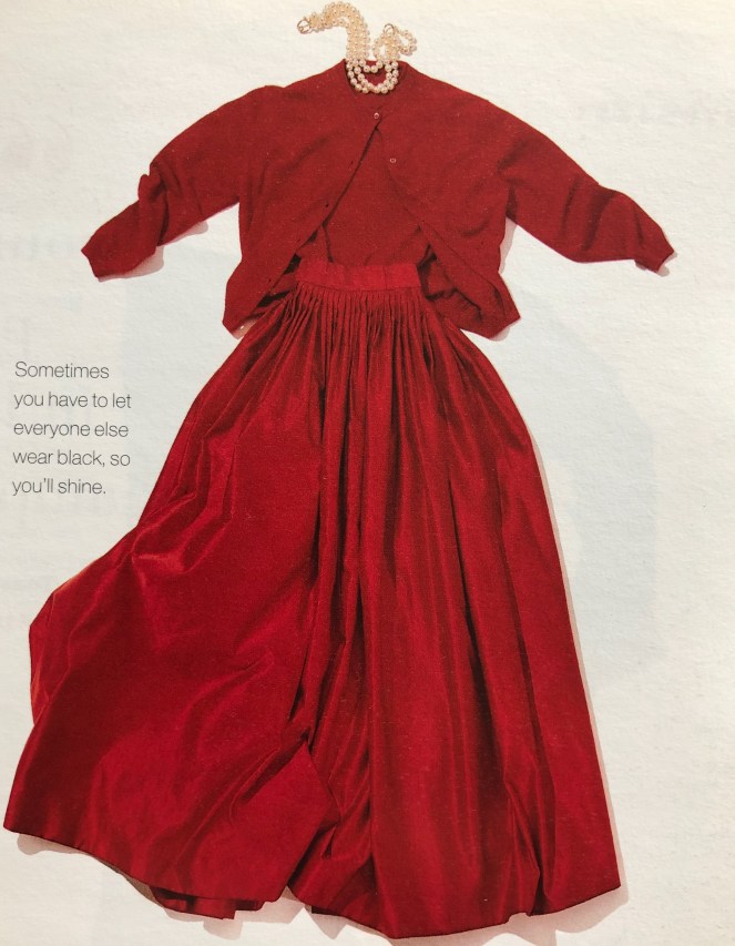 I adore the party outfit and the caption about letting everyone else wear black! That’s my belief in a nutshell, in fact, it would make a very good quote for my 2021 Filofax. And in case you’re wondering, that photo at the bottom right of this set doesn’t have a twinset in it at all, but it is the most autumnal of all autumn outfits, don’t you think? Even I, totally unable to carry off any shade of beige, fawn or camel, covet that outfit.