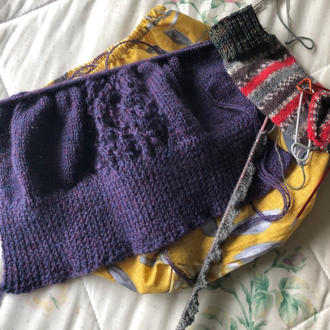 “But, it’s Wednesday,” I hear you whispering to yourself. “What’s she whiffling on about twinsets for? Doesn’t PamAlison always show me her knitting progress on a Wednesday?” Yes, I do that, don’t I, so here it is.