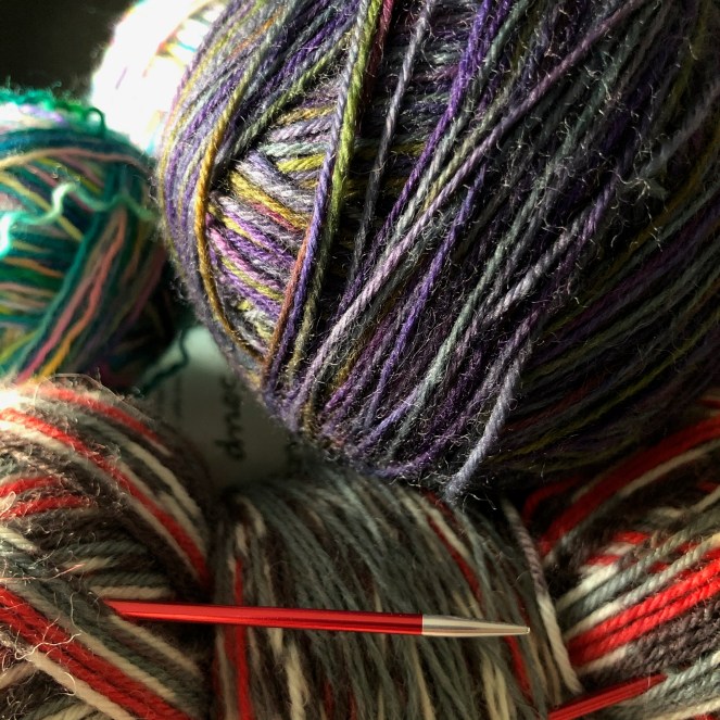 I have come to the conclusion that my sock drawer is going to need a refresh after this winter and, with this firmly in mind, I have been sorting through my stash to see which yarns I should use. Now, I will point out that my title “Six Socks for 2021” has been chosen with a view to alliteration over accuracy – I mean six pairs of socks rather than six individual socks. Now I have started thinking about it, I wonder if I should aim for twenty-one socks (ten and a half pairs), but I’m not quite that crazy. So, here is how I think it’s going to go.