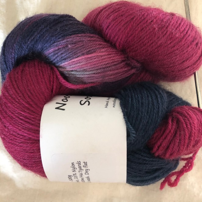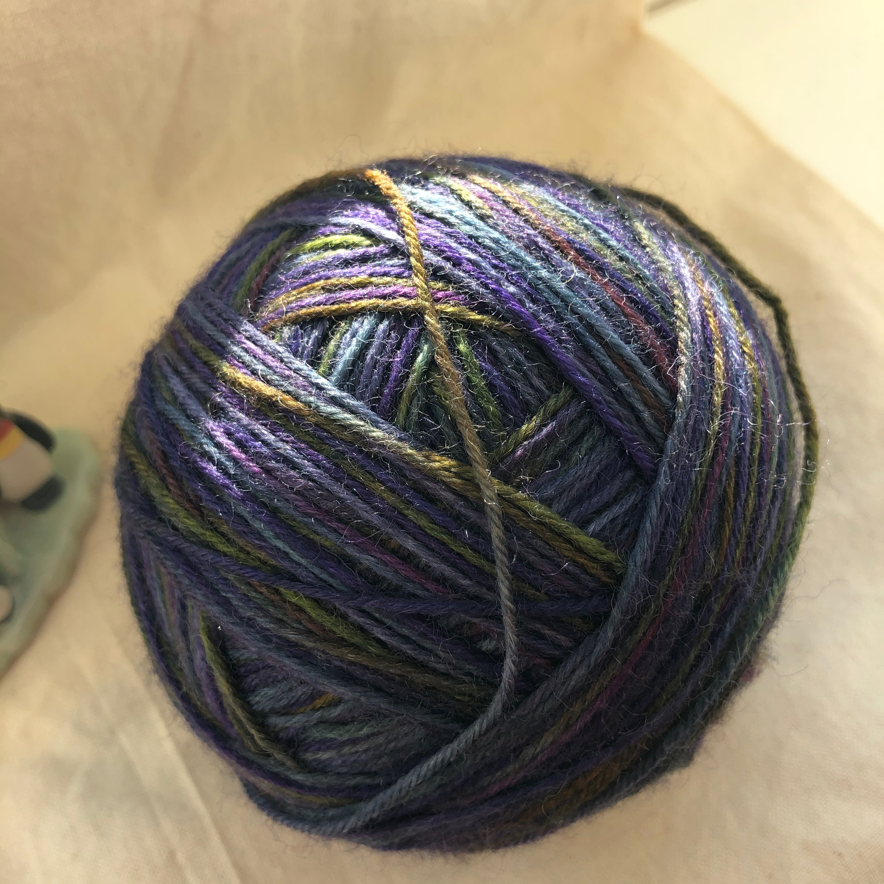 It strikes me that this un-named colour combination from Noodle Soup Yarns has all those lush, plummy vibes going on that will make it perfect to knit through the end of August and into September. All mellow fruitfulness and so on. Which leaves me with Question Mark and that is not a yarn, it is a ‘?’. I only have five sock yarns waiting in my stash which means the sixth pair of socks is, as yet, an unknown quantity. This allows for a little sock yarn gift – either from others or from myself – somewhere along the line in 2021.