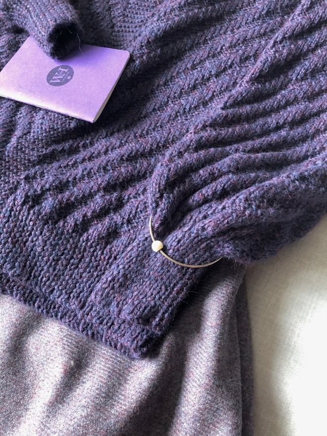 I ended up with a few scraps of the wool which will be added to my leftovers box. I hand-washed the jumper after finishing it, drawing the conclusion that the wool retains a fairly rustic quality. I don’t mind a prickle or two, but very sensitive souls would probably want to wear a layer underneath this. The thing I particularly like about wools of this type (I’d say this is reasonably similar to Shetland wools) is that they are sturdy and long-wearing. I won’t be surprised if I’m still regularly wearing this jumper many years from now.