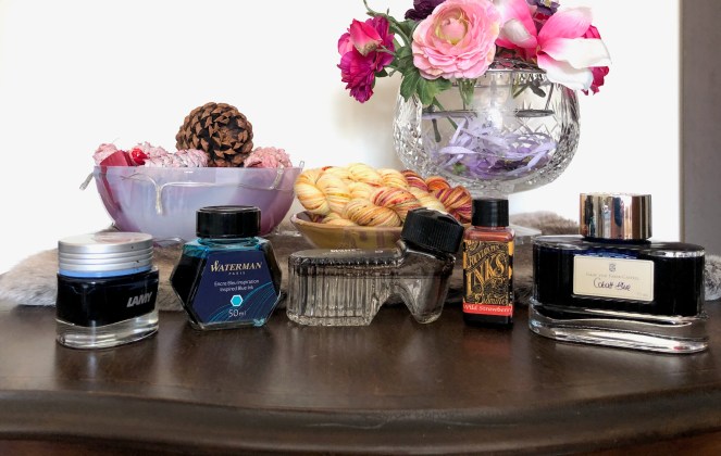 I thought it might be fun to explore which bits of my personality are drawn to the different ink bottles that I own. When I see my, admittedly limited, collection it strikes me that each bottle has its own appeal. So, let’s work from left to right.