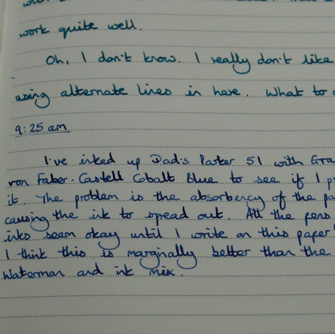 I think my dad’s Parker 51 filled with Graf von Faber-Castell Cobalt ink might be a little better with this paper, so I’m going to carry on using that and see how it goes…. although, you know, looking at these photos I’m not entirely convinced.
