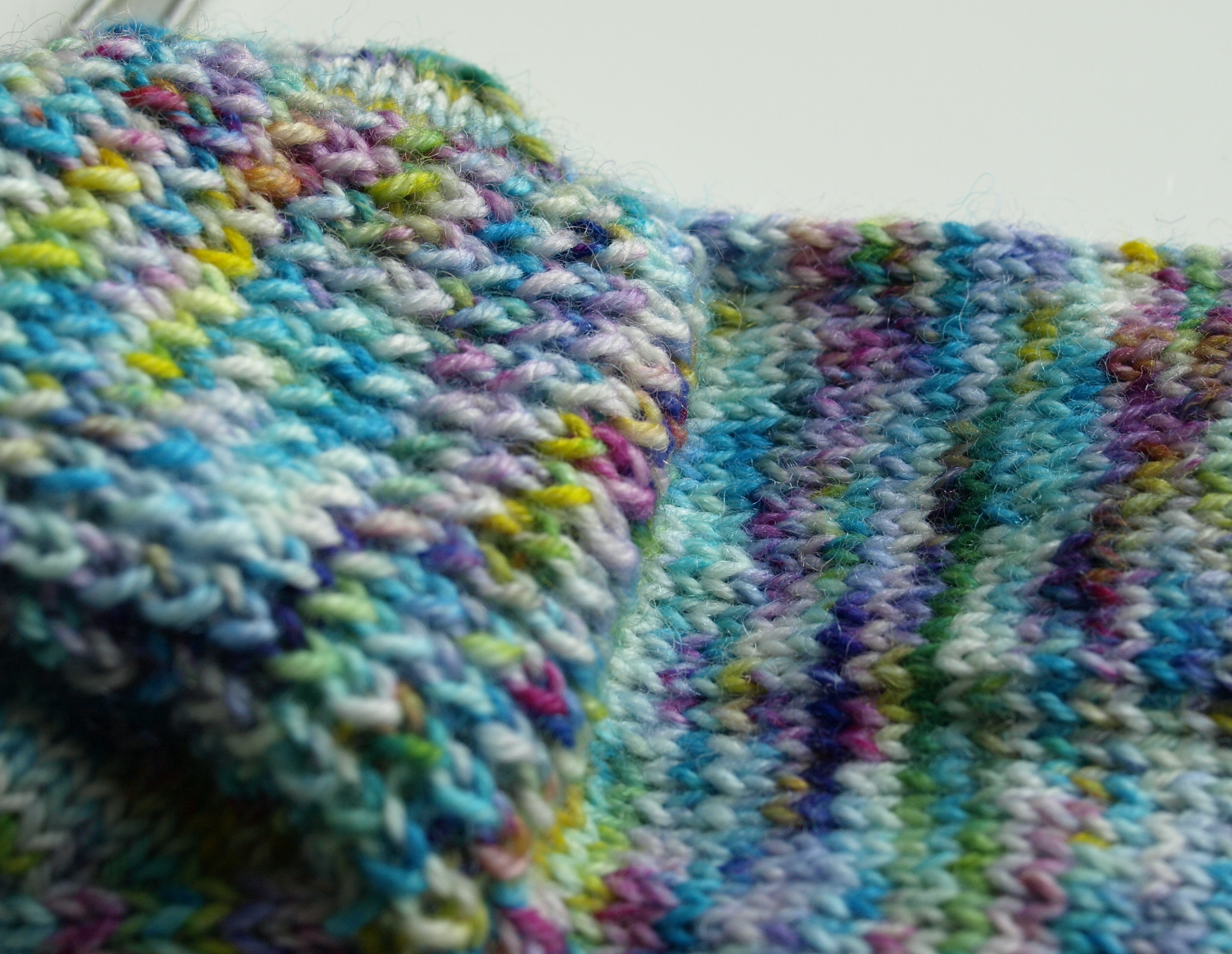 Anyway, back to the sock. I do love the colours in this sock yarn which, as you may recall, is Noodle Soup Yarns’ Sturdy Sock in Speckled Eggs. Now I come to look at it this close up, I can see all the colours of my bottles of ink in there. That turquoise-blue is like Waterman Inspired Blue, the yellows show some splashes of Diamine Honey Burst and I swear there’s a bit of their Meadow Green, too.