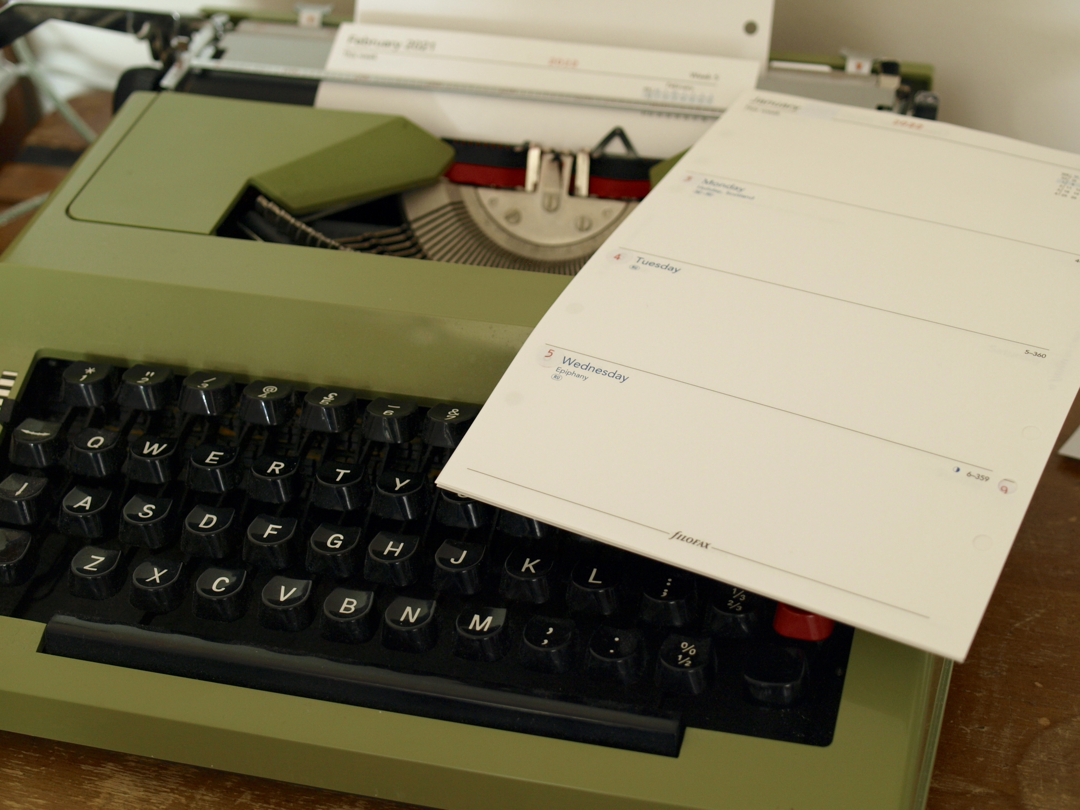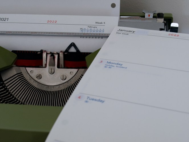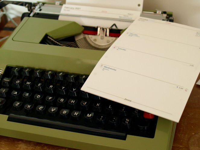 The reason I got my typewriter onto my desk in the first place was to try out typing my weekly quote onto my Filofax page and I was pleased with how it turned out. I’m going to carry on doing that. But that’s not all, because it got me thinking about the Filofax A5 academic diary pages for July 2020 to July 2021 which I bought reduced in price earlier this year. At the time I had the idea that I’d re-date them for 2022 and I toyed with a few ways I might achieve this: printing stickers using my computer; buying pre-printed stickers; buying washi tape printed with the dates.