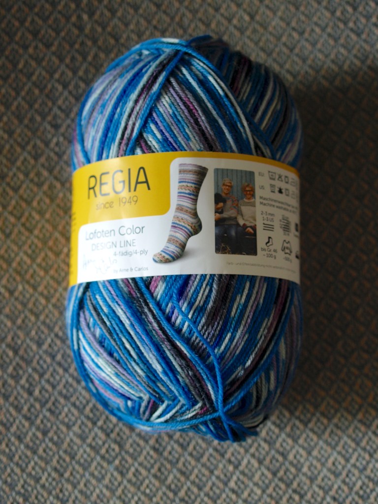 Of course, it didn’t make sense to order sock needles on their own. The parcel also contained secret yarn together with a ball from the Regia Arne and Carlos Lofoten sock range which I mentioned previously. I had great fun looking at all the colour combinations, and finally decided on Nusfjord. The picture on the ball-band makes it look like it has some gold and brown in it, but those bands are really pink and grey. With the violet tinges, this is a really pretty sock yarn. If you’re thinking of investigating the range, I’d definitely recommend a quick trip to Arne and Carlos’ blog where you’ll find a post that shows photos of all the colours knitted up.
