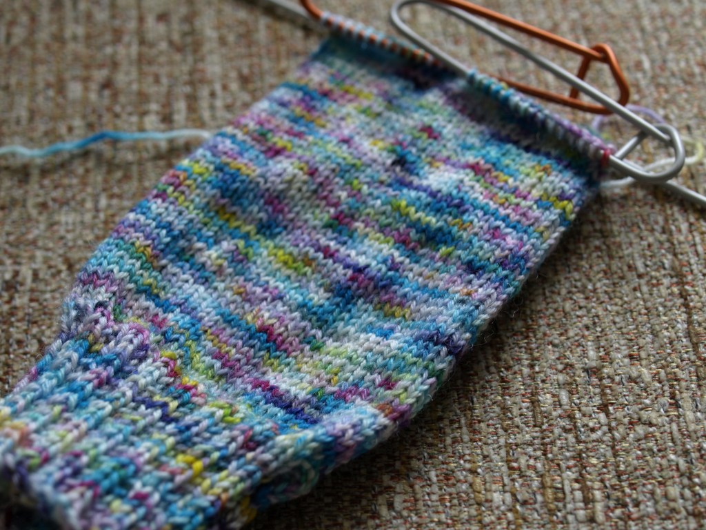 Stitch counts defeated me on my first attempt with this yarn, and I ripped it out completely on Thursday. Friday morning brought me my long-desired 2.25mm double-point needles and I was so pleased to be able to cast on again and work with 60 stitches which is apparently far easier than working with 56 stitches. Who knew? This is definitely the best needle size for me when it comes to socks, and I’m looking forward to knitting many more pairs.