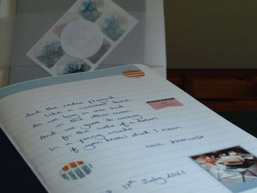 Now let’s talk journals. I finished the Spark notebook on Friday 16th July so it covered two and a half months of my life. I was enjoying the paper a lot by the end; changing to that Gulf Blue ink really made the world of difference. I’ve moved straight on to a fresh notebook and this time it’s from the Stamford Notebook Company who I’ve written about on previous occasions. They produced the diary insert I’m using in my Filofax and I’ve been impressed with the quality of their products. The books are pretty comparable in that both contain 80 sheets of 210 x 130mm paper. The Inspired Stories (Spark) notebook was hardback and covered with a very tactile fabric printed with the stars and my word of the year. I’m not yet at the point where I can afford one of the hard-bound journals from Stamford Notebook Company so I chose the soft-cover refill designed for their leather notebook cover instead.
