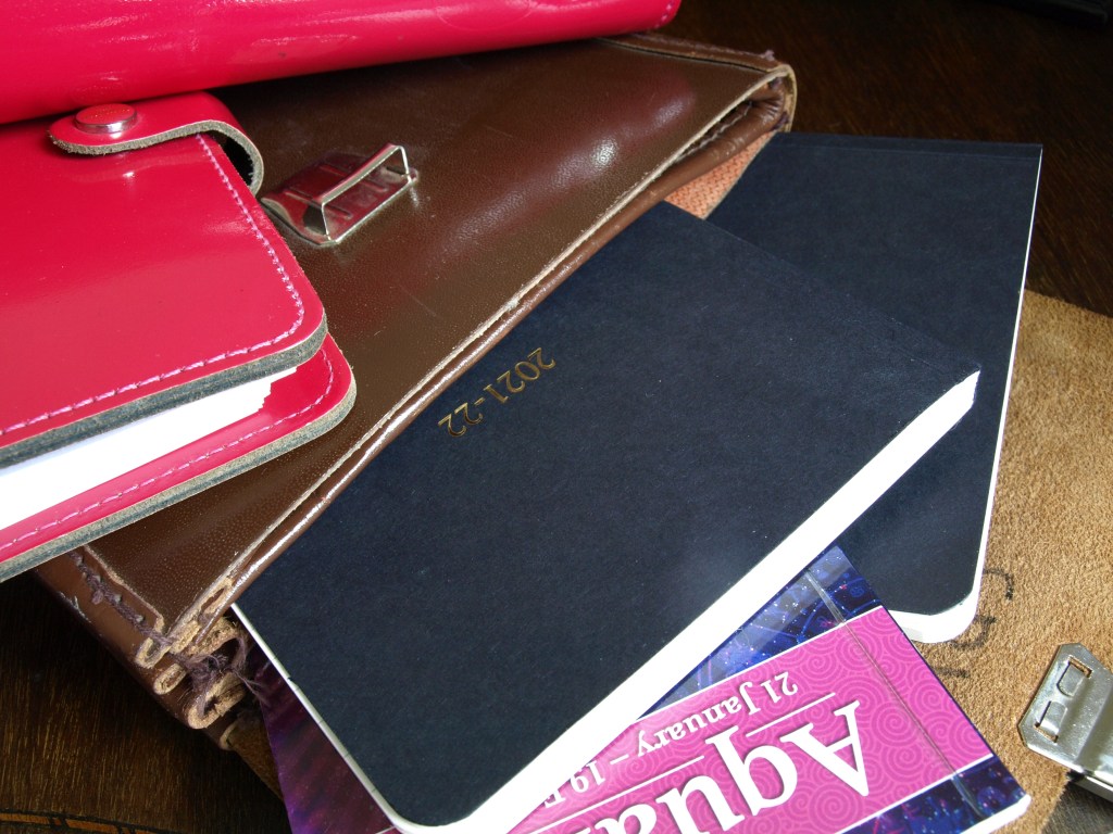 Having very quickly determined that the Week to Page Plus Notes layout didn’t work, I set about finding a use for the diary in a spirit of waste not, want not. It occurred to me that this would be the ideal format for a pen and ink journal. I could note which pens I filled and emptied on the diary pages and then list my currently inked pens each week on the facing page. The note pages at the rear of the diary would be great for longer passages to try out new pens, or inks, or fresh combinations of my existing scriberly toys. This now sits happily with my current journal and horoscope book inside my Cold War Map Case, the purpose of which has settled on being my journal case.