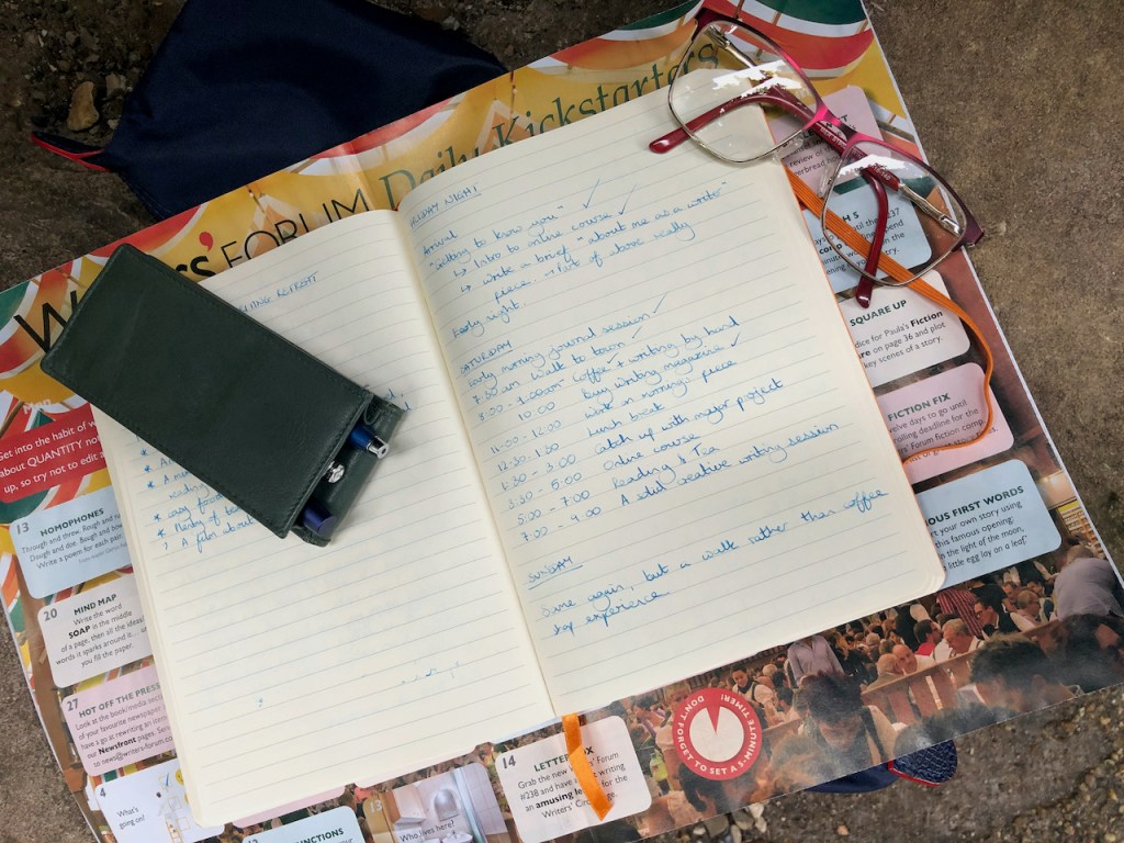 What, you may ask yourself, is that? Well, a traditional writing retreat would be a group of writers getting together in a quiet, scenic location to work on a mix of group activities and their own projects, with the focus being on support and encouragement. A solo writing retreat might involve individual writers spending time in a space – seaside guesthouse, cabin in the woods etc – which has been set up specifically for such visits. Some writers take themselves off to a hotel when they need to focus on their work and that would be another level of retreat. The idea of a DIY retreat owes a lot to the pandemic as it revolves around the idea of staying in your own space but setting aside a longer period of time than you usually allow to focus completely on your creative endeavours.