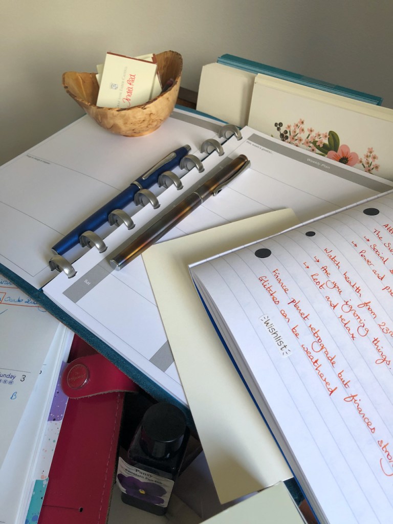 Of course, my newest pen is the Diplomat Traveller with its funky but subdued finish. This has been inked up consistently since I unpacked it, but I think it is fair to say that it has yet to worm its way into my heart. That doesn’t mean there’s anything wrong with it, or that I feel any remorse. If anything, it is a good indicator of my temperament – I often need to have things for a long time before I come to love them. Like plants in a garden, they need to be allowed time to bed in and room to put down roots. I have no doubt that the Diplomat will carve out its own little corner in my affections.