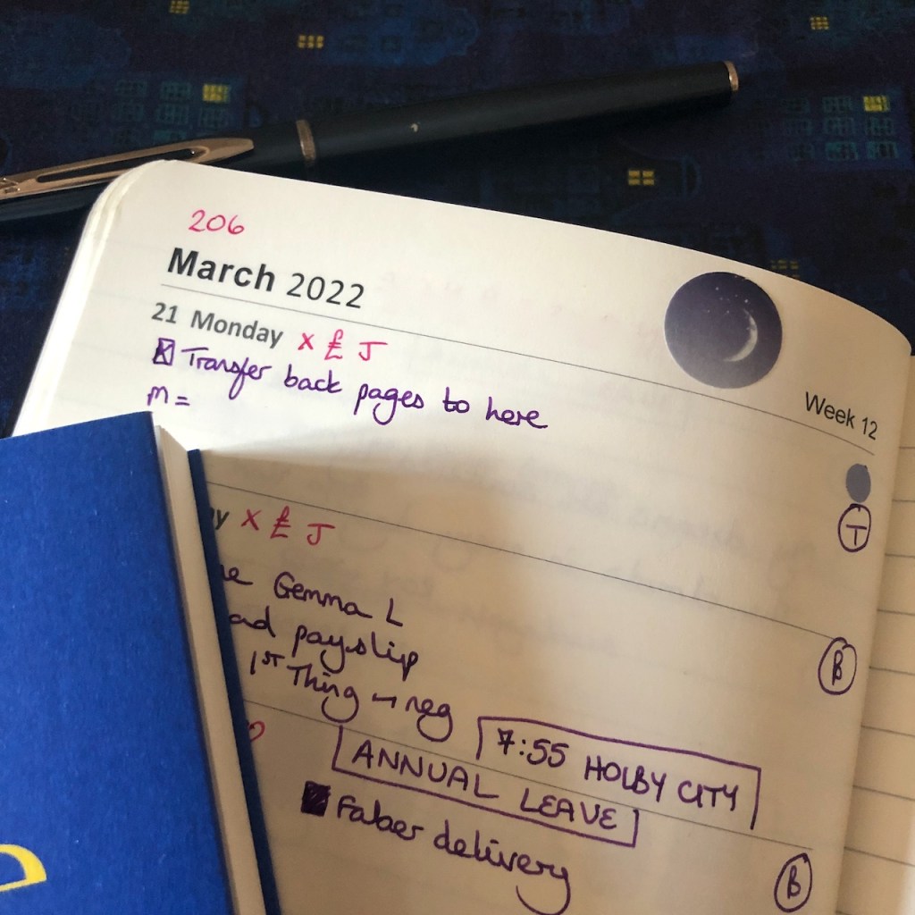 The mini diary was fine for recording headlines – an appointment, an item or two that I wanted to get done that day. There was room for a weekly quote so long as it was no more than a single line – quite an interesting challenge. I’ve seen photos and videos of people making the space look infinite by filling it with miniscule writing, but that is never going to be my way. My space needs to adapt to suit my writing, not the other way around.