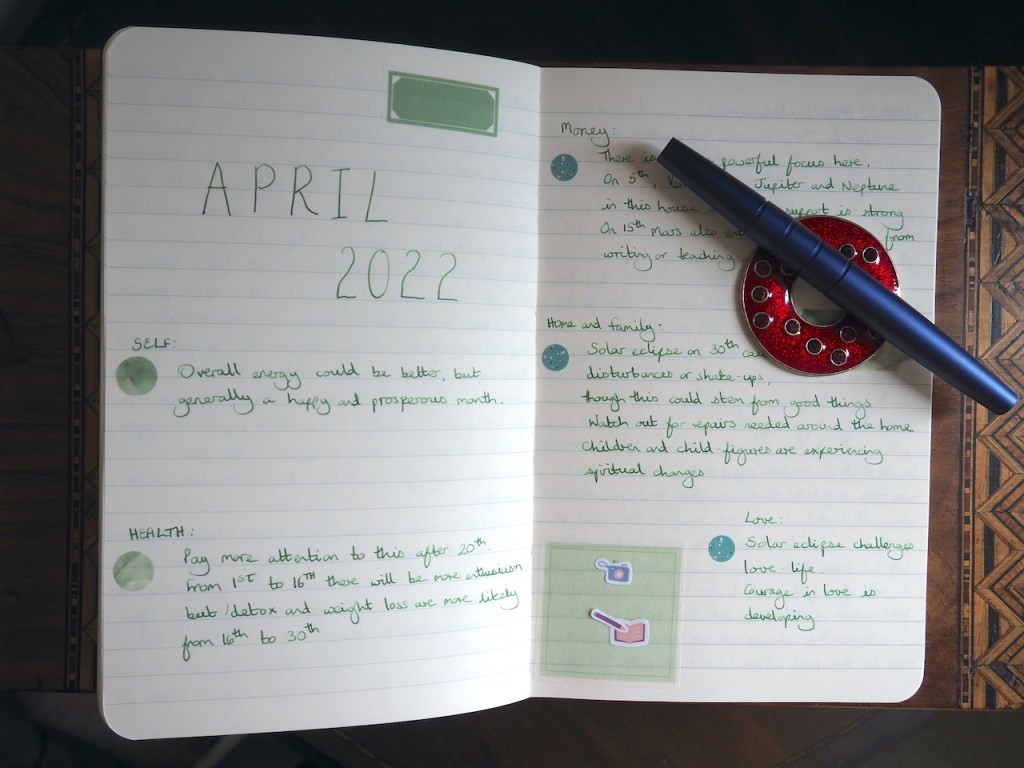 Have you noticed how all the planner people decorate in lovely bright shades of green for March on account of St Patrick’s Day? I was going to decorate the March horoscope synopsis in my journal with these spring green stickers, then didn’t feel like it. So, here they are adorning April instead.