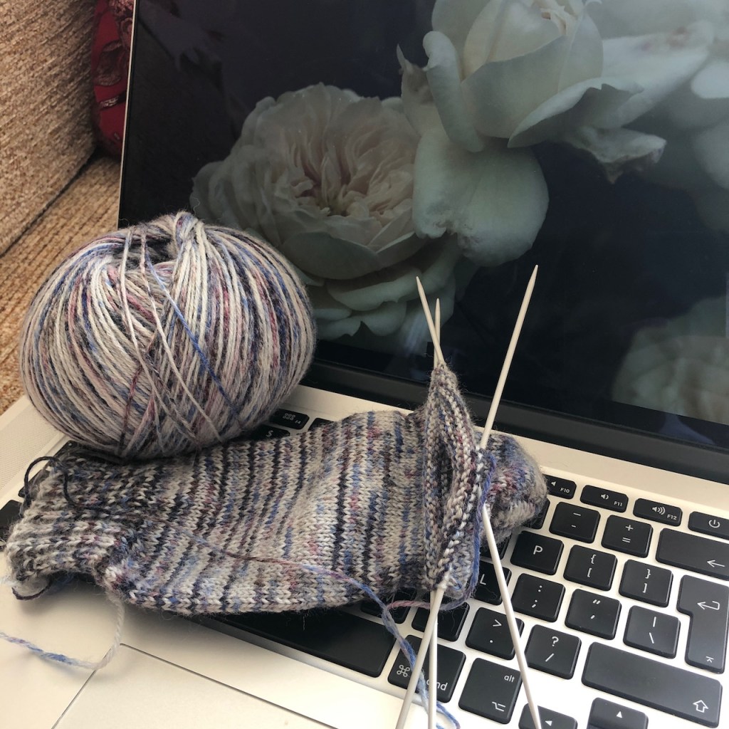 To cheer myself up, I’ve been getting on nicely with my first sock out of the Rico Vintage sock wool and finding it a very nice yarn to work with. I like the effect as this is knitting up and I’d be tempted to buy again in a different colour combination, but I think it’s probably a discontinued line. Never mind, other lovely wools will happen along when I’m ready for them. I have a pile of pens to clean out, and ironing to do, but I’d really like to spend the afternoon knitting and listening to a good Cadfael murder mystery.