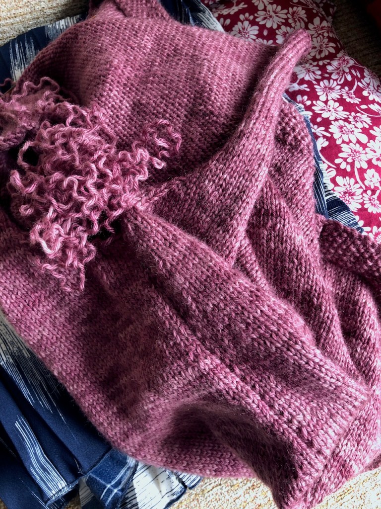 We mustn’t forget the knitting and sewing because there’s a pile of unfinished business here: a skirt I’ve got part of the way through shortening, a dress that needs something doing with the sleeves, and the pink sleeveless cardigan which is starting on its journey to reincarnation.