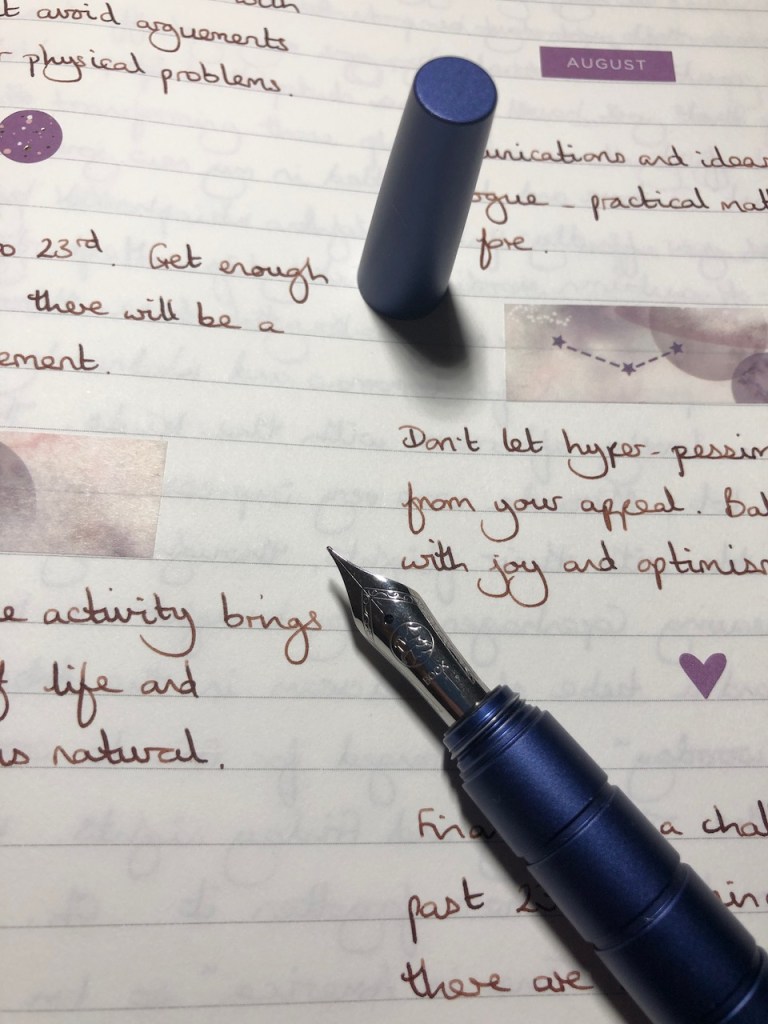 These pen and ink shenanigans formed part of my general inability to decide on anything. I was happiest in the middle of the journal when I spent a month with Waterman’s purple ink. In fact, I was so enamoured of the uniformity that I’ve decided to commit to completing a whole new volume of my journal with one main ink colour. I’ve chosen to use up a box of cartridges of Graf von Faber-Castell Hazelnut Brown. This does mean I’ll be limited to using the pens which take standard international cartridges, but I have enough of those in my collection to keep me happy: the two Waterman Hemispheres, the Diplomat Traveller, and the Namisu Orion. My Lamys, Crosses and Parkers can do their duty in the planner where I’m using bottled inks.