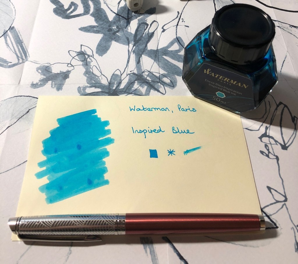 The colour I’m least sure about is the Meadow because I have an uneasy relationship with this ink. I’ve put it in the Namisu Orion which is quite a wet writer and I generally find Meadow to be a rather watery ink – lots of shading but inclined to be too delicate for my tastes in its lighter parts. I’ll journal with it and see how we get along this time around. The Kawco has a medium nib so should provide a good coverage of Honey Burst. I envisage using this one to journal as well, plus bits and bobs of note-taking along the way. I’ve opted for my fine-nibbed Waterman Hémisphère as my final pen so that at least one pen will behave itself in my diary/planner. I love Inspired Blue so much, I don’t know why I felt surprised that I had to have it in the selection for this month.