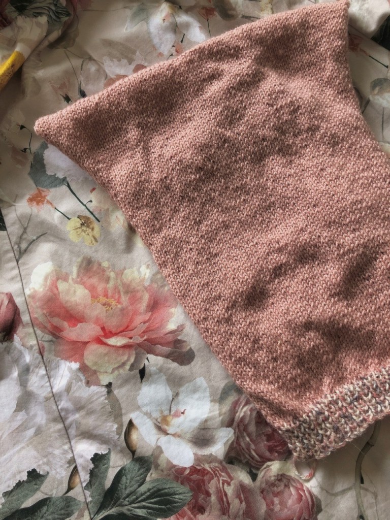 I’m very tempted to try and come to a decision about whether I will continue and knit my planned series of garments from Rowan Moorland Collection 2 around this colour, or use this as a one-off practice piece. I don’t feel that one and a half sleeves in is the point where I can make that decision, though. You can tell a certain amount from a sample, but that is usually best it you’re comparing two closely-matched things to decide if the colours harmonise or clash. I’m sure this soft pink will work with an all-navy base (such as the trousers and blouse I often wear to work), but beyond that I shall have to practice patience and wait until I have the completed garment which I can try on with a variety of outfits.
