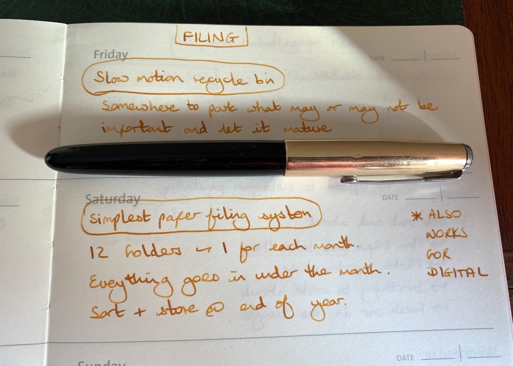 Parker Sonnet / Pilot Iroshizuku Fuyu-Syogun This was a great combination and I do love the colour of this ink. I shot through a full converter, using it in my journal, in my planner, and generally whenever I picked up a pen. It was quite a strong start to the month. I’d love to say that I quickly cleaned out the pen and returned it to my pen case, but actually I popped it down momentarily on the sofa cushion and only found it again today. I’m happy to say that it’s now in the kitchen waiting to be cleaned.