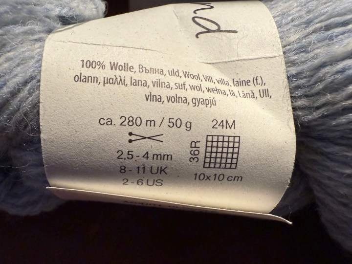 The yarn is Bio Shetland, 100% pure organic wool. It’s made in Turkey for the Danish brand BC Garn. The ball band information is what I would term as very “modern” – it’s so busy making sure the information suits as broad a base of knitters as possible that it fails to give me what I, as an older knitter, need.