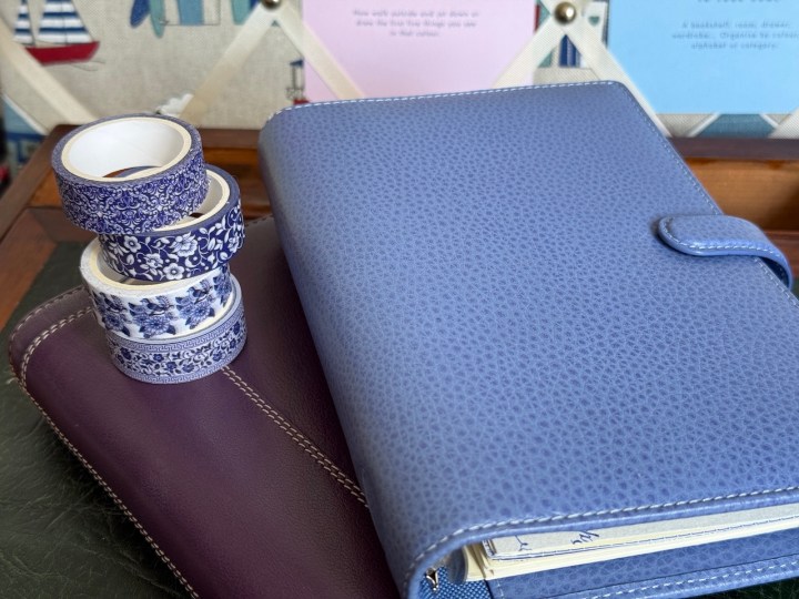 I didn’t immediately start searching, but after a week I took a look on eBay, and then on Etsy, but I finally settled on a personal size vista blue Filofax Finsbury being sold on Vinted. I have long loved this shade of blue (which is very close to the colour of the sky in my Tower of London photos) and I looked hard at this version of the Finsbury when it was released in 2022, but I was in my A5 phase. Now I have the binder in my hands, I am even more in love with the colour. It is not too pastel, nor too deep, it is not too green and it is not too grey, it is not too bright, nor too muted. It may potentially be, for some people at least, just a little too pretty, but I can do pretty. I was very impressed by the Vinted seller who managed to get this purchase to me within 48 hours of me placing the order (and I ordered it on a Saturday) then included four colour-matched washi tapes which I adore.
