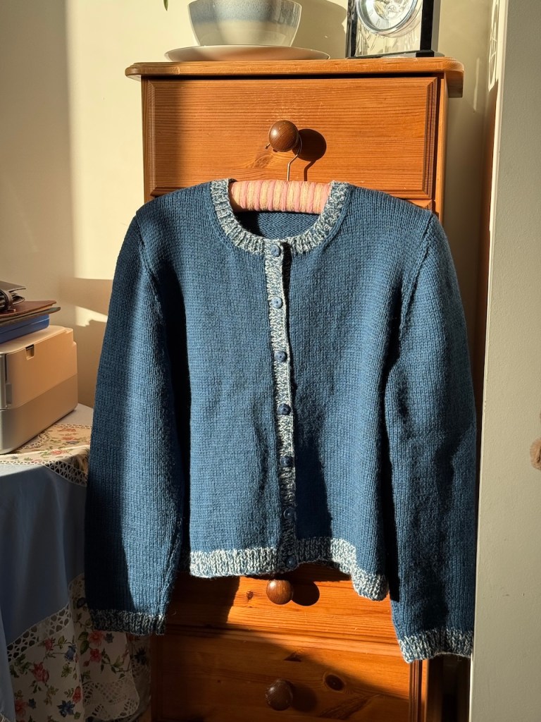 Hi. I was wearing my cardigan this morning, and it really is very good indeed. One day I must make the patterned version of this design which has birds on it and a corrugated rib.
