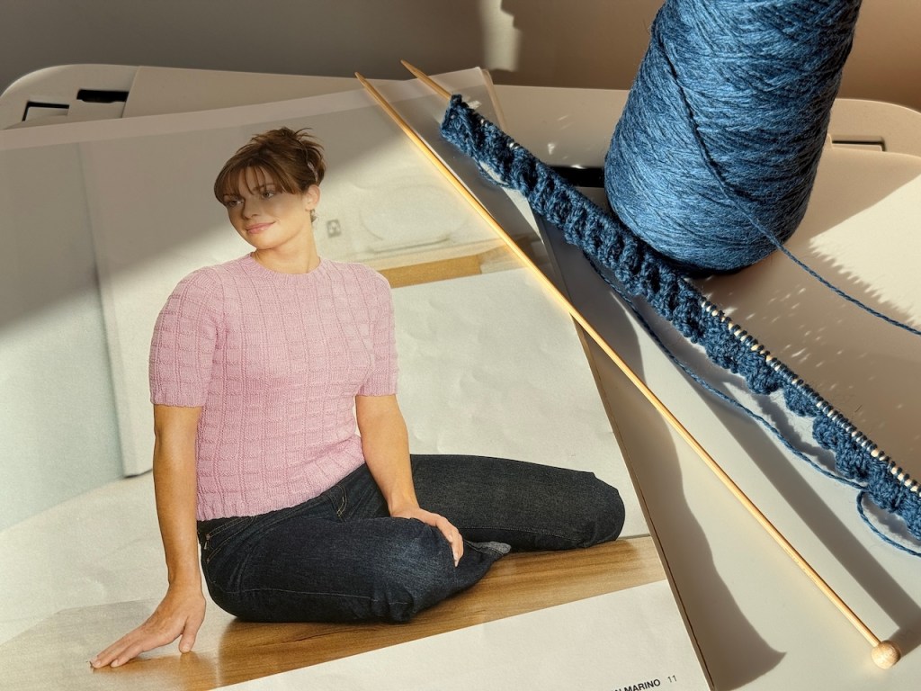 It’s in the very early stages and the jury is out on whether I have enough wool to make it. The cone pictured above has the smaller amount of the two cones I was using for the cardigan, so once I’ve finished this I’ll have a better idea. As to the “capsule”, I have a reasonable start. There’s a skirt which needs to be shortened, a pair of jeans which need the buttons moving so I don’t feel like they are going to fall down all the time, and a very serviceable cardigan.