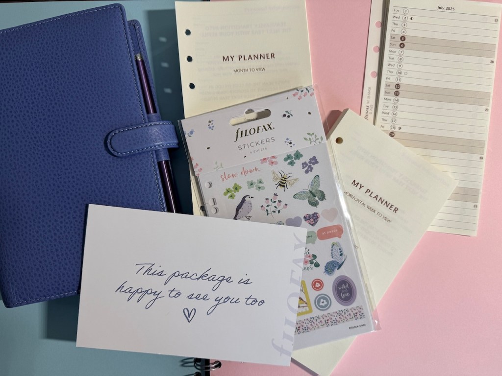 The final “filler” item on my order was a pack of the Filofax stickers which I will set aside for springtime because that’s the vibe they give. I think I like the Filofax sticker sets more than ones I’ve ordered from Etsy shops. Not much of a surprise there since they are sized perfectly for the pages I use, and are punched to fit the personal planner rings. A non-essential, but nice extra if you like a bit of feminine frippery on your pages.