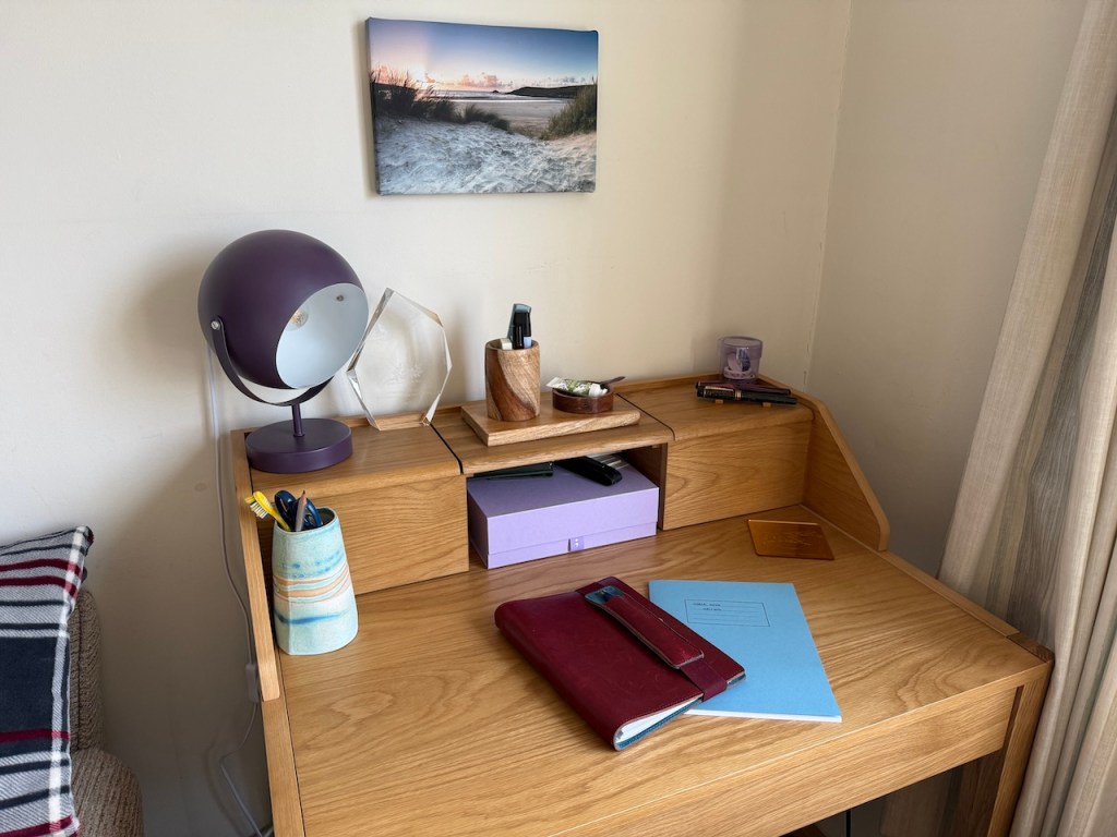 Time has passed and my desk has gradually evolved from the initial set-up last summer. There was a brief spell of glam and glitz over Christmas but now it is readying itself for some serious work. Despite the changing landscape, the desk continues to be one of my favourite places. I am happy to report that I’ve had no regrets whatsoever at replacing my beloved old school desk. This feels like home, whether I’m typing on my MacBook or hand-writing with pens, ink and paper.