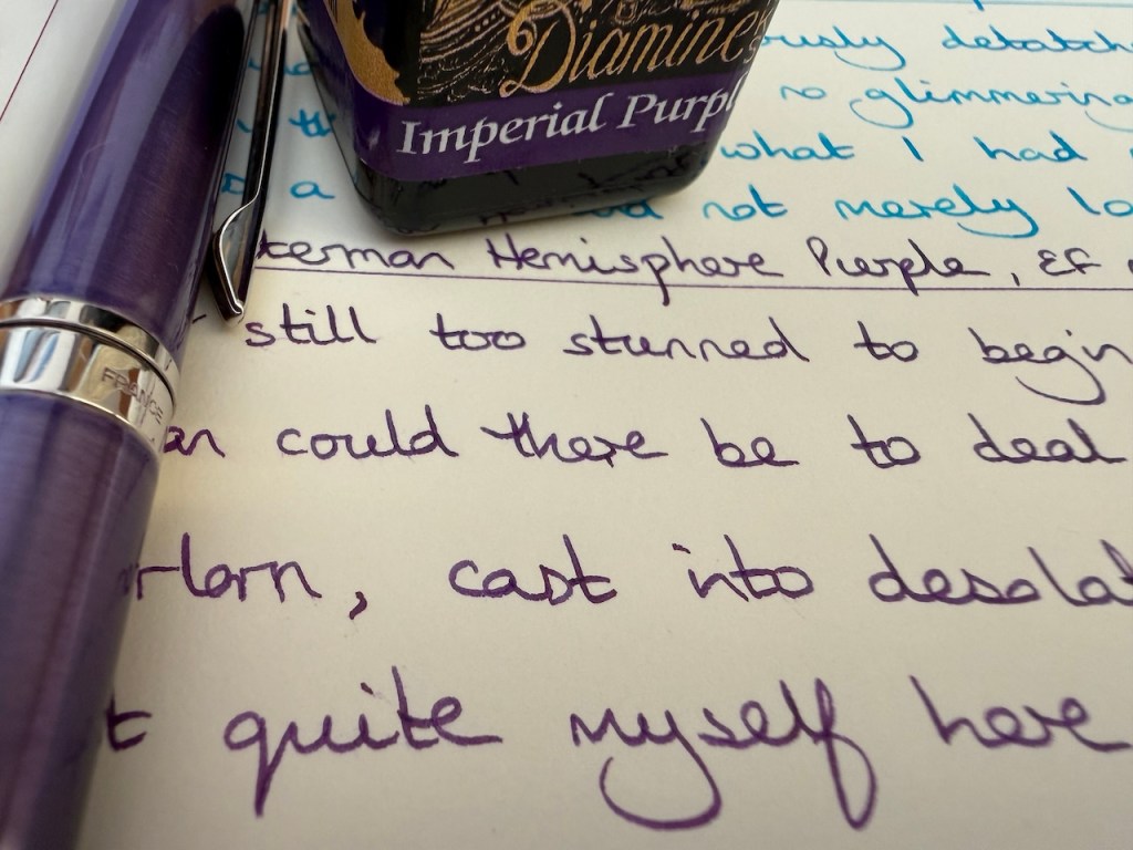 Waterman Hemisphere/Purple, EF nib, Diamine Imperial Purple, 4/5 full.